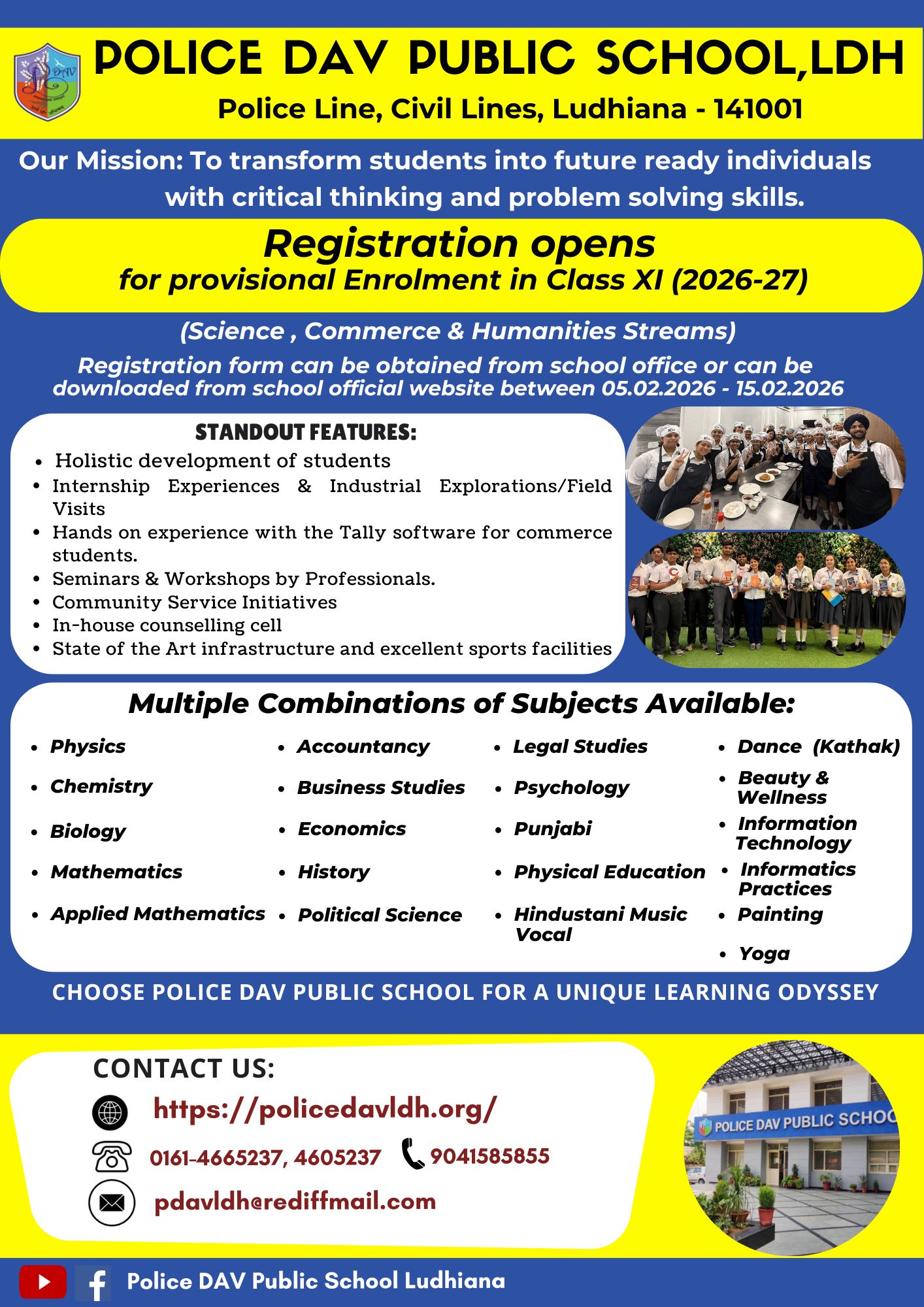 Police DAV Public School, Ludhiana, affiliated to CBSE(New Delhi) is a joint venture of Punjab Police and DAV College Managing Committee, New Delhi. It is a co-educational English Medium Institution which aspires to meet the expectations of value-based quality education for the wards....